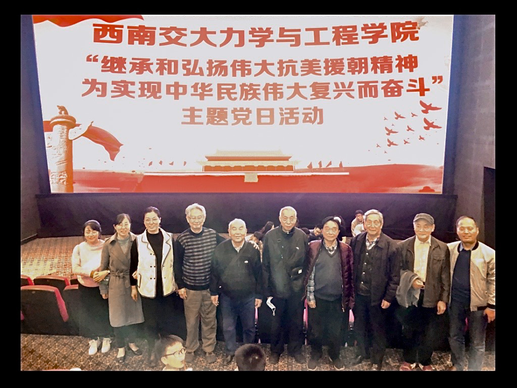 为深入学习习近平同志在纪念中国人民志愿军抗美援朝出国作战70周年上的讲话精神,2020年10月30日,力学学院机关及退休教职工党支部开展“继承和弘扬伟大抗美援朝精神,为实现中华民族伟大复兴而奋斗”主题党日活动,集体观看了抗美援朝主题电影《金刚川》