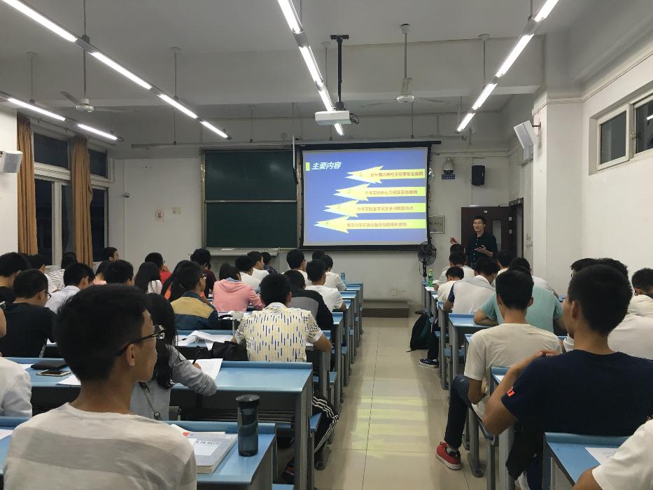 同时通过对力学实验中心的简介和对力学实验操作注意事项的介绍,让同学们更加了解力学实验室,也告知同学们在实验过程中需要注意的操作和需要小心的仪器设备;通过发放和签订《实验室安全须》知让同学们更加清楚实验室的要求和注意事项。