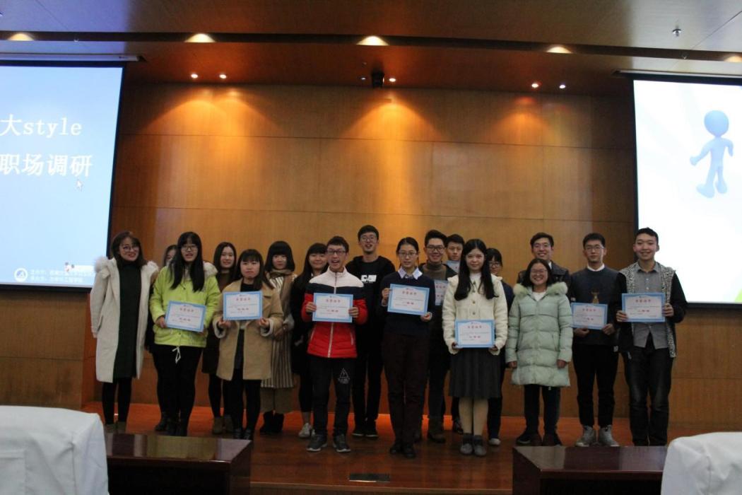 本次比赛分为选手展示、老师点评、职场知识问答三个环节。评委由PPT质量、调研报告质量以及现场表现三个方面为选手打分并评出名次。