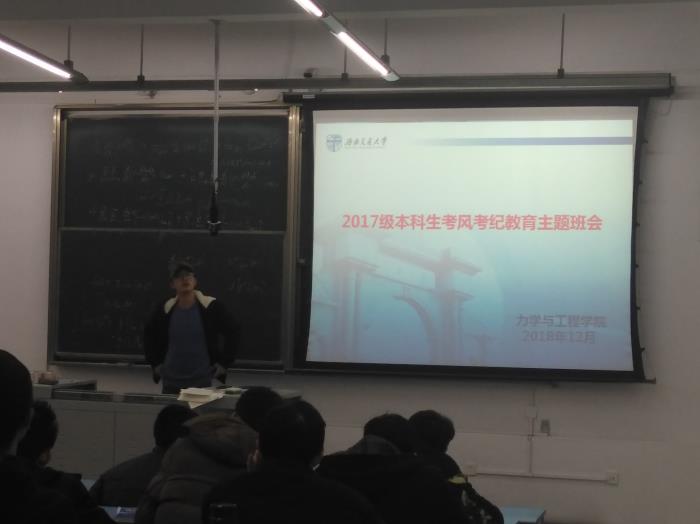 本学期期末考试即将临近,为加强考风考纪教育和安全防范意识,2018年12月26日17:30,学院2017级本科生在X2417教室召开诚信考试主题班会。