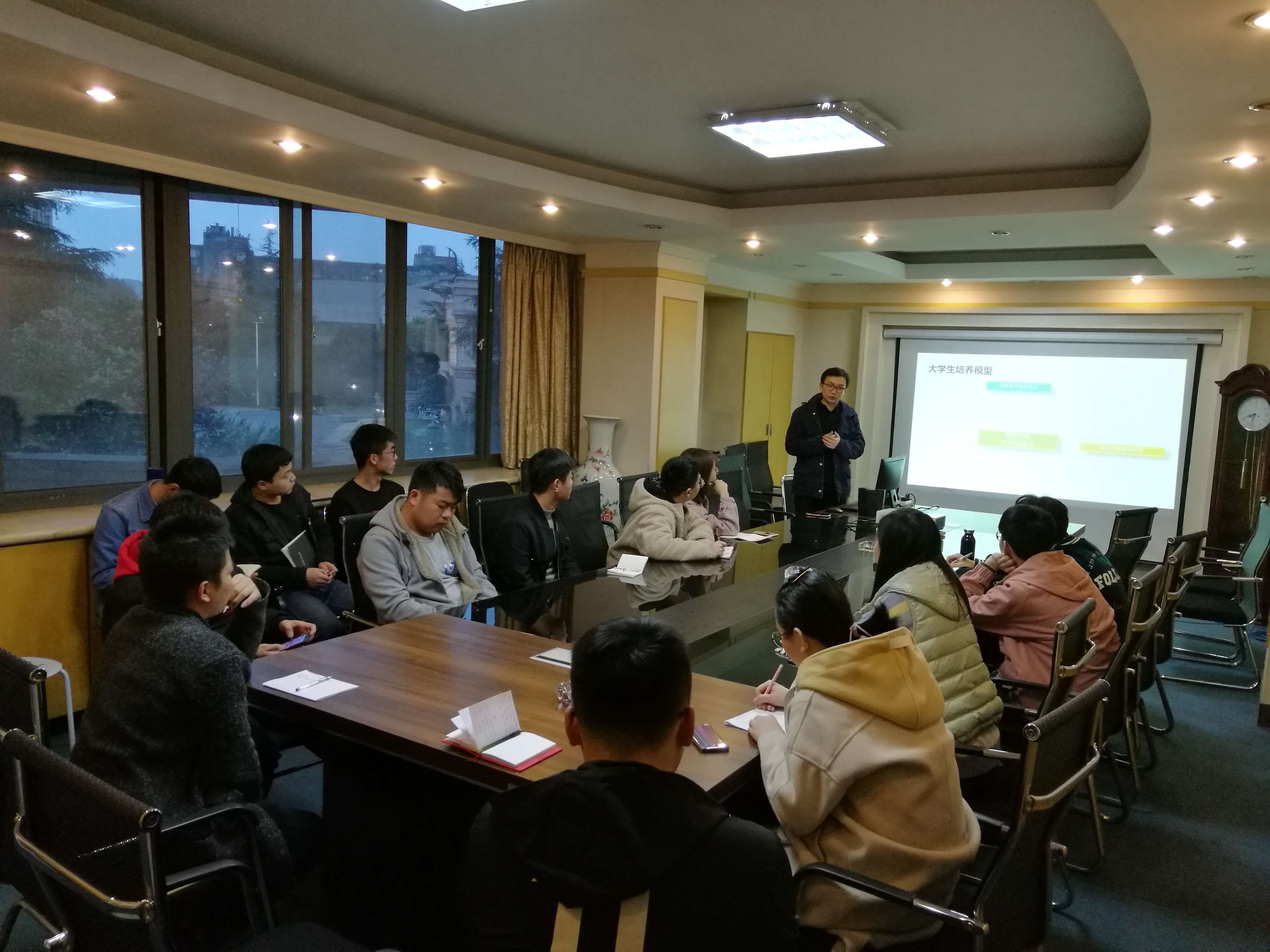 为加强力学与工程学院研究生会自身队伍建设,提高研会成员的工作能力,2019年3月21日晚,在九里校区1号综合楼222会议室,力学研会特别邀请学院党委副书记孔祥彬老师和研究生辅导员张英蓉老师与研会成员讲座交流。