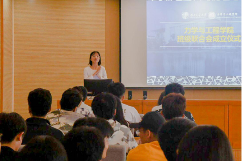 接下来,班联主要负责人王逍和罗瑶对学院班级联合会的主要工作做了说明,包括加强力学与工程学院整体学风建设,监督晚自习和上课的出勤率,抓好学院学风等方面安排。