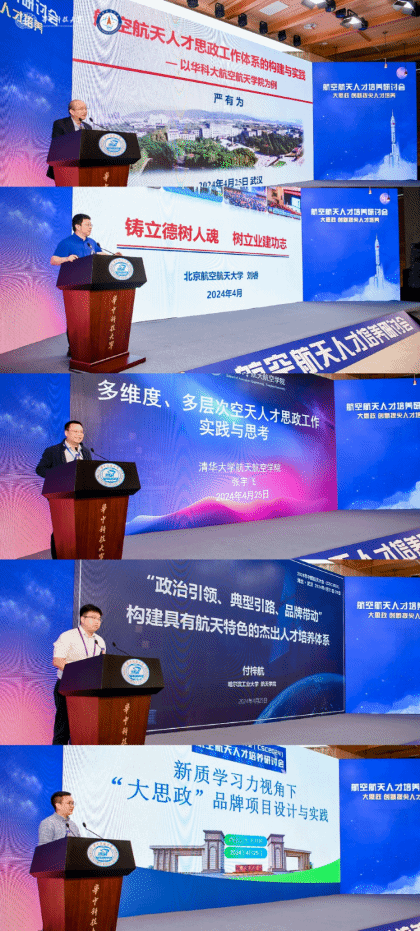 在大会主旨报告环节,华中科技大学航空航天学院党委书记严有为作了题为“航空航天人才思政体系的构建与实践”的报告,北京航空航天大学宇航学院党委书记刘睿作了题为“铸立德树人魂,树立业建功志”的报告,清华大学航天航空学院党委副书记张宇飞作了题为“多维度、多层次空天人才思政工作实践与思考”的报告,哈尔滨工业大学航天学院党委副书记付梓航作了题为“‘政治引领、典型引路、品牌带动’ 构建具有航天特色的杰出人才培养体系”的报告,77779193永利官网77779193永利官网党委副书记孔祥彬作了题为“新质学习力视角下大思政品牌项目设计与实践”的报告。