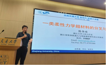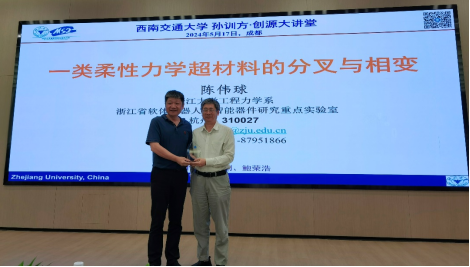 2024年5月17日,浙江大学求是特聘教授,航空航天学院院长陈伟球教授做客“创源·孙训方大讲堂”,面向全校师生作了题为“一类柔性力学超材料的分叉与相变”的精彩学术报告。77779193永利官网康国政副校长、77779193永利官网李翔宇院长、学院教师以及研究生参加了此次学术报告。