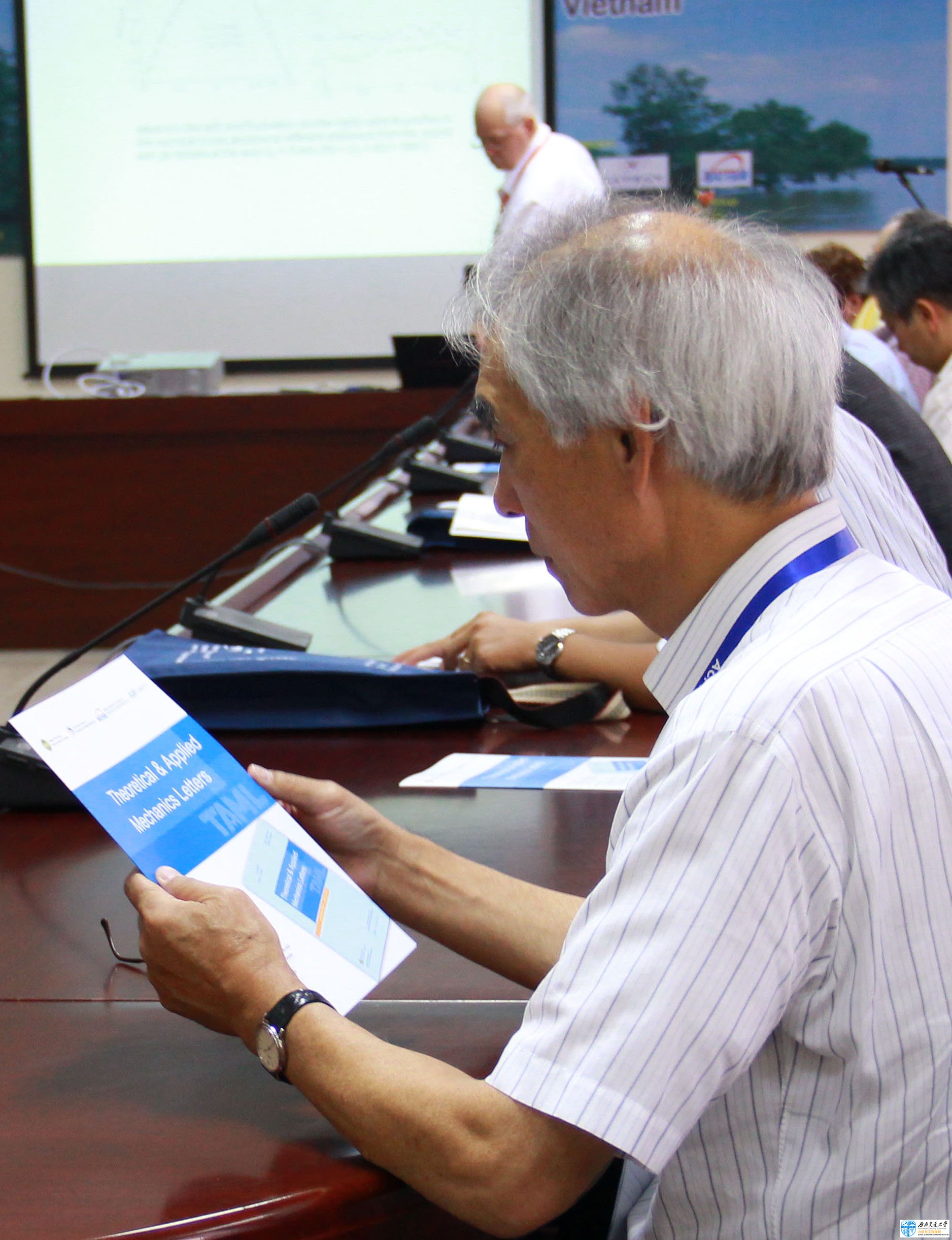 第14届亚洲流体力学会议(ACFM 14)于2013年10月15-19日在越南河内举行。本届大会由亚洲流体力学委员会(AFMC)主办,越南科学院力学研究所(IMVAST)承办,北京国际力学中心(BICTAM)是协办单位之一。与会代表来自20个不同国家和地区,报告论文242篇,其中大会报告8篇,邀请报告4篇,涵盖了流动稳定性与湍流、空气动力学、水动力学、非牛顿流、多相流和渗流、工业流体力学、环境流体力学、地球流体力学、天体物理流体力学、传热与传质、气动声学、非定常流与控制、微纳米流体力学等19个不同研究领域的课题研究成果。会议还组织了以“未来地球、未来亚洲----- 全球的可持续发展”为主题,涉及水资源、环境、灾害的三个专题研讨会。中国来自中国科学院力学研究所、清华大学、北京航空航天大学、中国航天动力研究院、上海大学、上海交通大学、兰州大学等单位的30余名科学家参加了大会,北京航空航天大学王晋军教授和北京大学陶建军教授应邀做大会邀请报告。