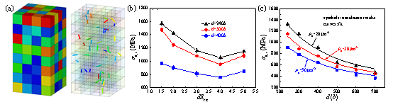 (c)不同初始位错密度下屈服应力与晶粒尺寸之间的关系