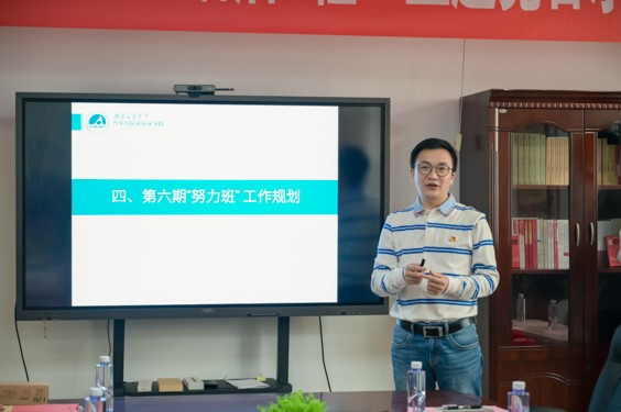 首先,永利官网副院长阚前华介绍了第五期“努力班”开展情况。阚院长从力航学霸团发挥朋辈带头作用、学业分析及课业辅导、组织各类“努力讲坛”讲座等方面介绍了第五期努力班工作的开展情况,并通过数据分析发现,“努力班”人数逐年减少,从2019年的63人到2022年的15人,学困生人数降低了76%,帮扶效果明显;同时阚院长总结了“努力班”工作开展中的不足之处,号召各位师生党员做好模范带头作用,丰富帮扶举措,继续做好新一期努力班帮扶工作。
