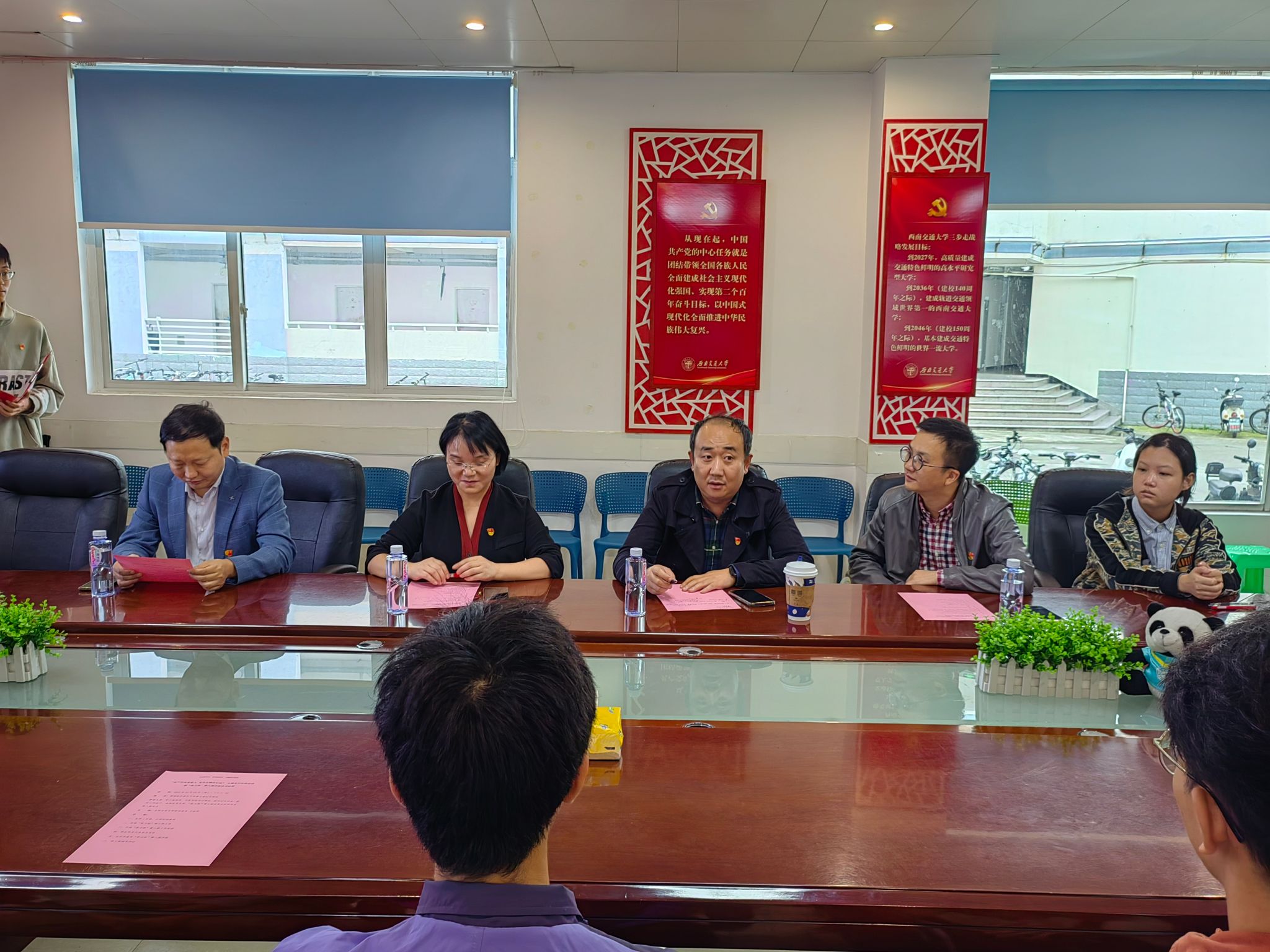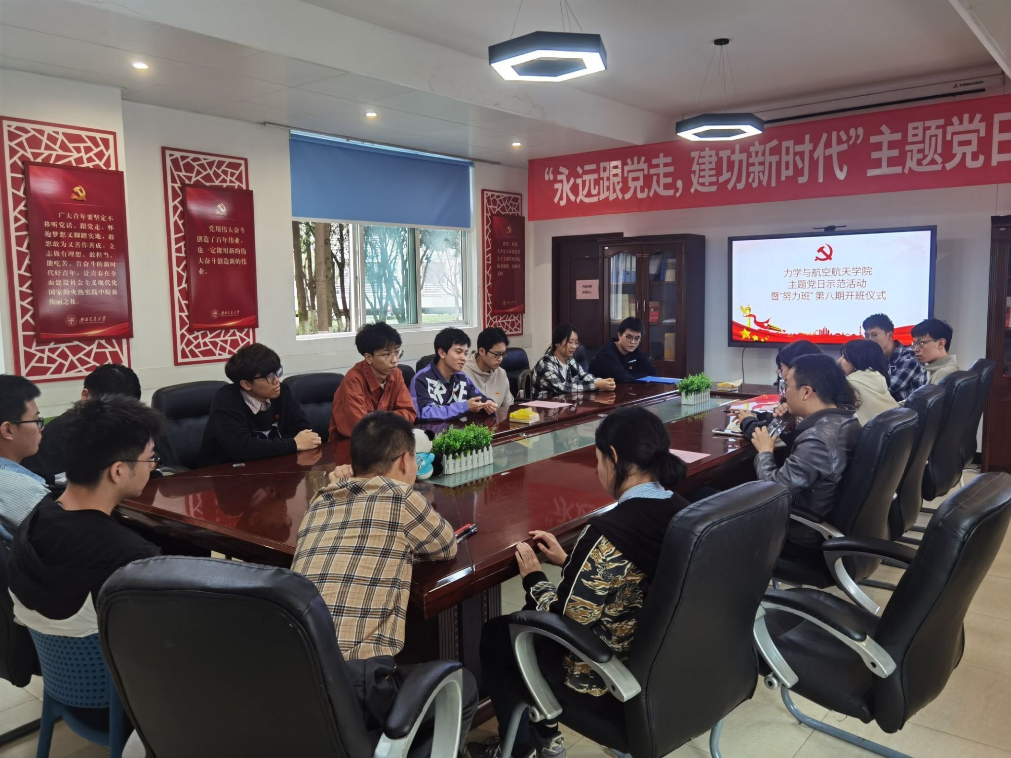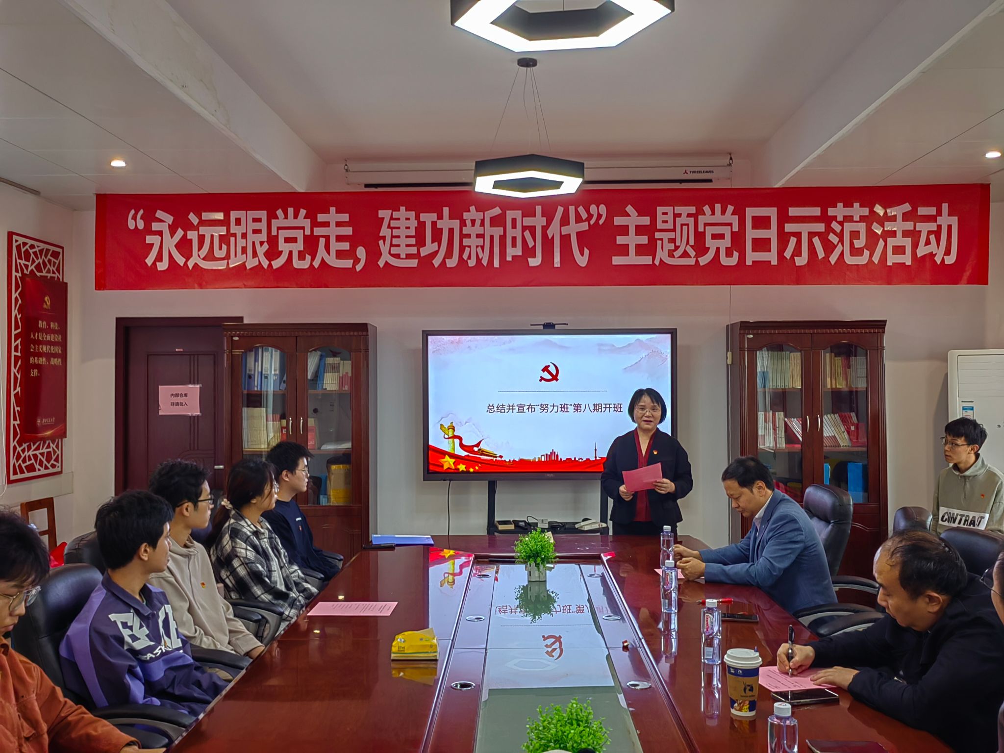 2023年10月18日下午2:30,77779193永利官网77779193永利官网本科生党支部在犀浦校区南区天佑斋3栋红色驿站举行“双严学风育新人,党员先锋在行动”主题党日示范活动暨“努力班”第八期开班仪式,校党委学生工作部副部长邢晓鹏、永利官网党委书记栗民、党委副书记孔祥彬、副院长阚前华出席本次活动,本科生党支部的部分党员同志、入党积极分子和学生会的工作人员参加本次活动,活动主持人为本科生党支部宣传委员王骏烨。