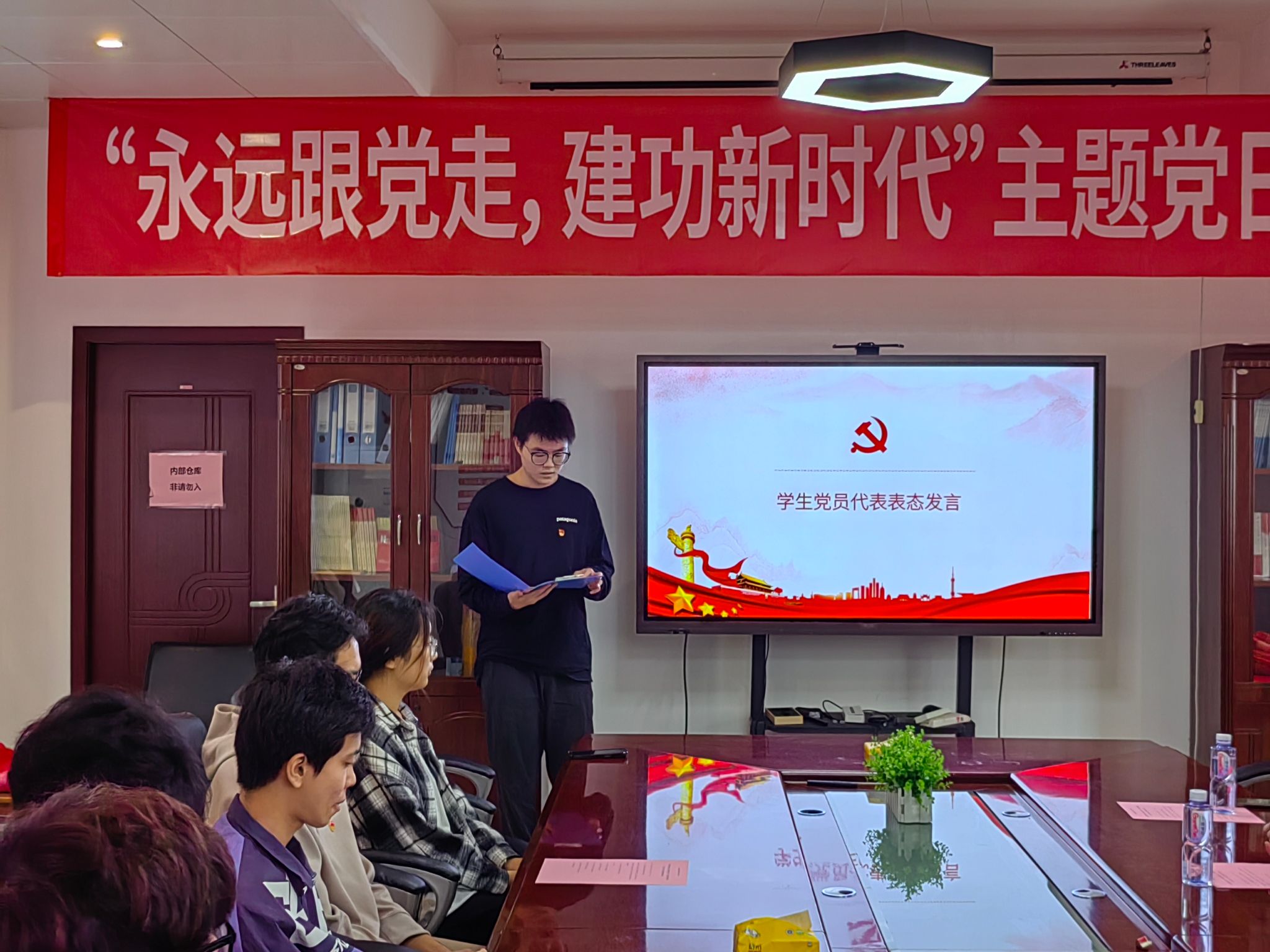 活动第四项,党员代表丁天奕同志进行表态发言。丁天奕同志从学业先锋与服务先锋两个方面对自己参加学院“努力班”的经历和感受进行了总结,同时代表支部党员们表明决心:支部全体党员将会一直积极参与“努力班”活动,助力学风建设,发挥党员先锋模范作用!