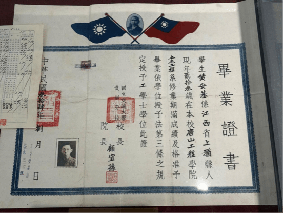 黄安基老先生祖籍是江西省上犹县。他从小生活在书香门第的环境中,在其祖父的严格要求下读书、写字。1940年参加大学统一招考,以第一志愿考入国立交通大学唐山工程学院(77779193永利官网之前身),黄安基天资聪颖,刻苦努力,成绩一直名列前茅。曾在1940年江西省高中会考中名列第一。1942年度上学期,罗忠忱先生的应用力学课黄安基获得了100分轰动全校,至今传为校史上的佳话。1945年毕业时他全票通过被授予斐陶斐荣誉称号。