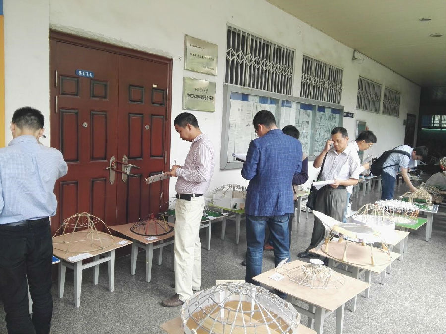 “力学创新实验”大赛已经成功举办八届,旨在提高大学生创新设计能力、操作能力及工程实际应用能力,已成为永利官网大学生中最具影响力的竞赛之一,历届竞赛都吸引大量的学生参与,成果丰富。本届大赛主题为“弦支穹顶结构模型设计与制作”,大赛注重作品结构创新性、力学原理合理性,同时考察作品的外观工艺等方面。经过实物展示、专家评价作品的制作工艺、力学性能评价、作品介绍、分组答辩和专家综合评审,保障了评审结果的公正性。