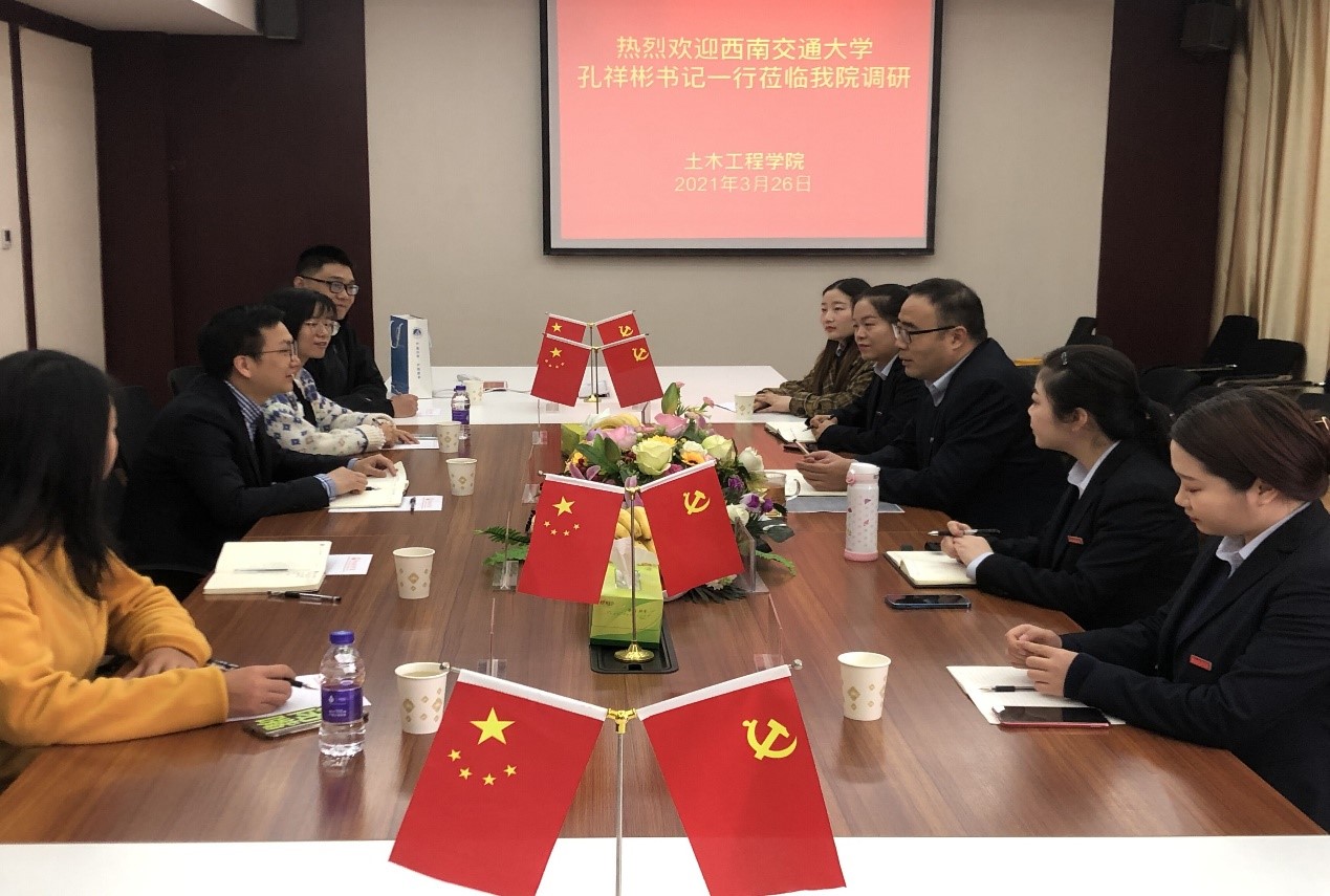 3月26日上午,77779193永利官网力学与工程学院党委副书记孔祥彬、学生工作组副组长杨婧等一行五人来到郑州财经学院土木工程学院开展毕业生就业回访调研。郑州财经土木工程学院党总支书记焦建伟、副院长徐媛媛、党总支副书记王丹丹、77779193永利官网2014级毕业生葛盼盼、2017级毕业生周茜茜等参加了座谈。