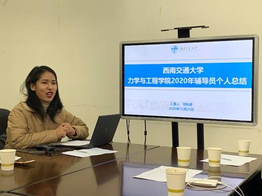 各年级辅导员述职后,学院党委书记栗民充分肯定了2020年度学院学生工作,她表示:力学学工组是一个具有战斗力的集体。一年来,学工组始终坚持落实“立德树人”根本任务,在日常思想政治教育以及学生管理中发挥了积极作用,与教学口团结协作,构建起了学院“三全育人”的大思政工作格局,相关工作成效明显。希望学工作组来年能够继续同心协力,凝聚力量,将力学学生工作做得更加出色。
