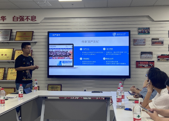 周子涵老师做了题为“‘双严文化’宣传2.0版升级方案与砥力科创营建设2.0版升级方案”的汇报。他指出,“双严”精神要通过不断宣传教育内化进学生们心中,同时也要外显于学生们行动中。下一步将继续加强文化宣传以及科创营组织,将“双严”传统在新时代力学学子身上不断彰显。