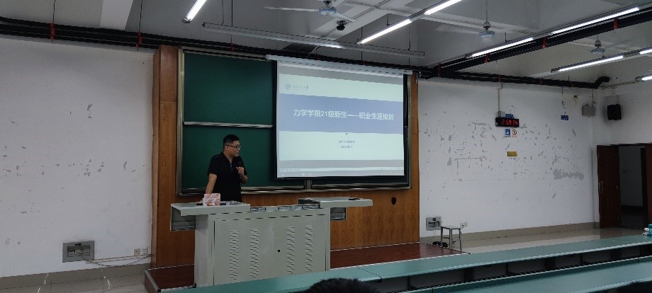 9月18日上午,力学与工程学院召开2021级本科新生年级大会,大会由辅导员王彪老师主讲。