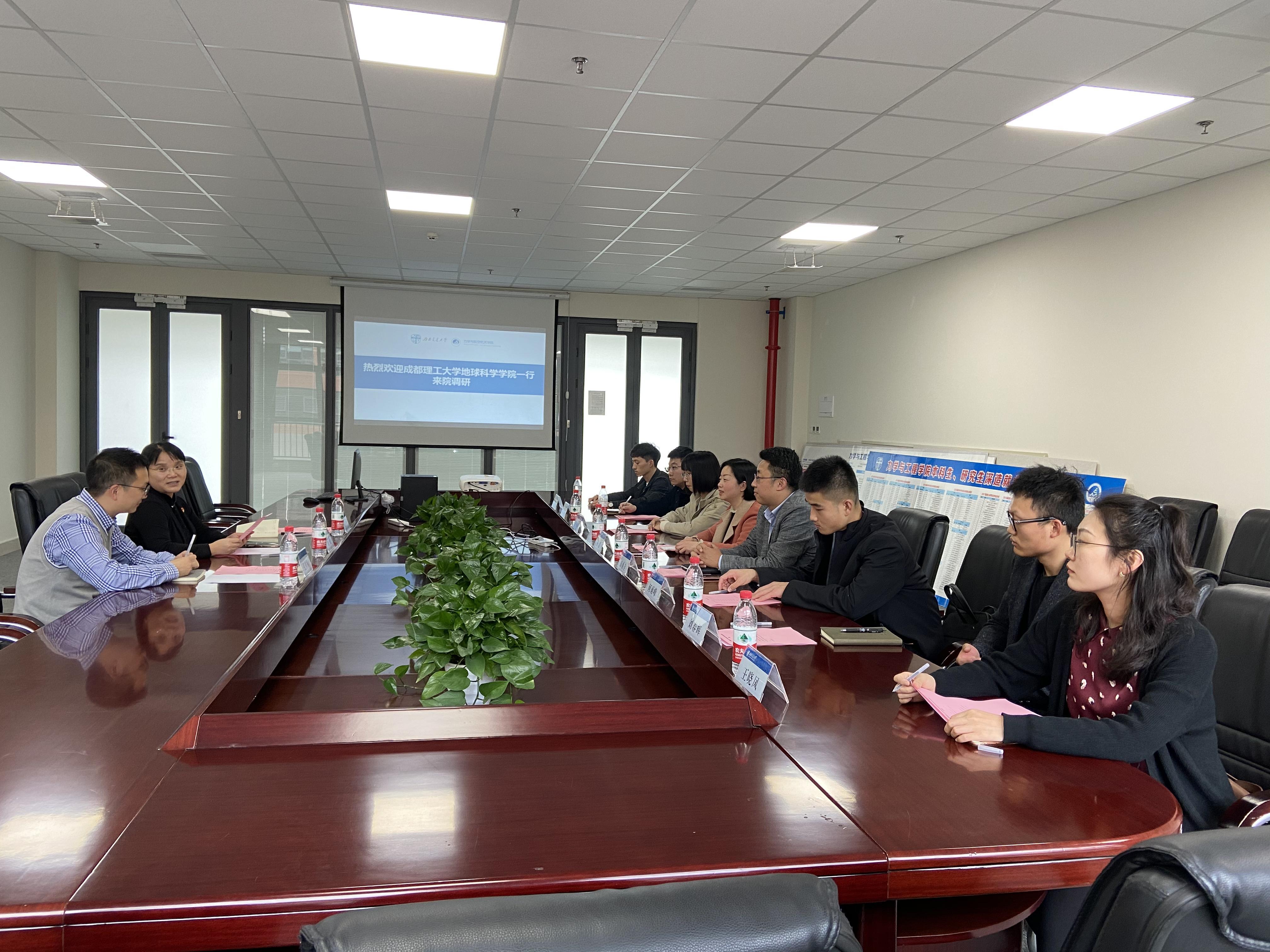 10月29日下午,成都理工大学地球科学学院党委副书记杨毅一行8人来到77779193永利官网,与学院党委书记栗民、党委副书记孔祥彬、辅导员张容华等老师们在犀浦校区三号教学楼30280会议室进行了座谈交流。