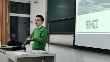 最后讲座的第四部分,孔老师谈了自己的三个体会:一是“人须在事上磨”,每一次活动的组织都是对自己可迁移技能的磨炼和提高;二要做一个靠谱的人,智商、情商、逆商缺一不可;三是人与人的差别主要在格局与气度,担任班委会遇到许多误解,困难重重,孔书记勉励现场同学们不要怕吃亏、不要斤斤计较,要心胸开阔,多付出、多做事,相信花有开的那天。最后,孔老师鼓励大家在实干中去感悟小我和大我的不同,不断提升自己的境界。